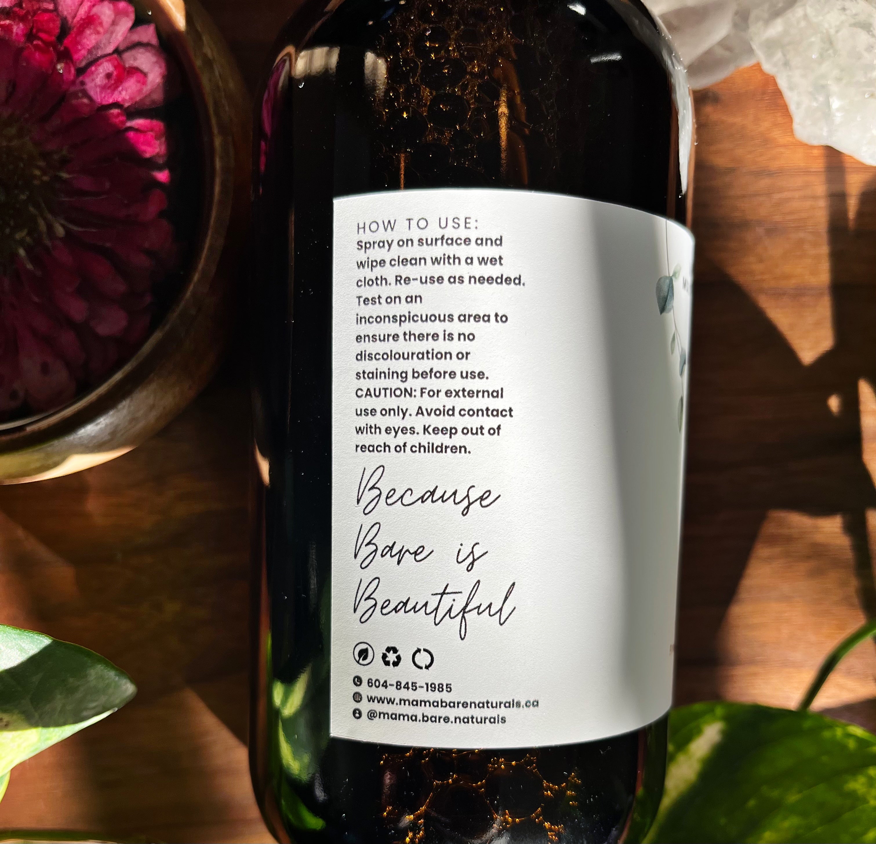 Our toxin-free multi-purpose cleaning spray is handmade locally and scented with essential oils that are natural, yet powerful disinfectants. Designed to cut grease without the “elbow grease”. Feel at ease knowing that you are cleaning your surfaces with all natural ingredients that are safe, germ fighting and effective.