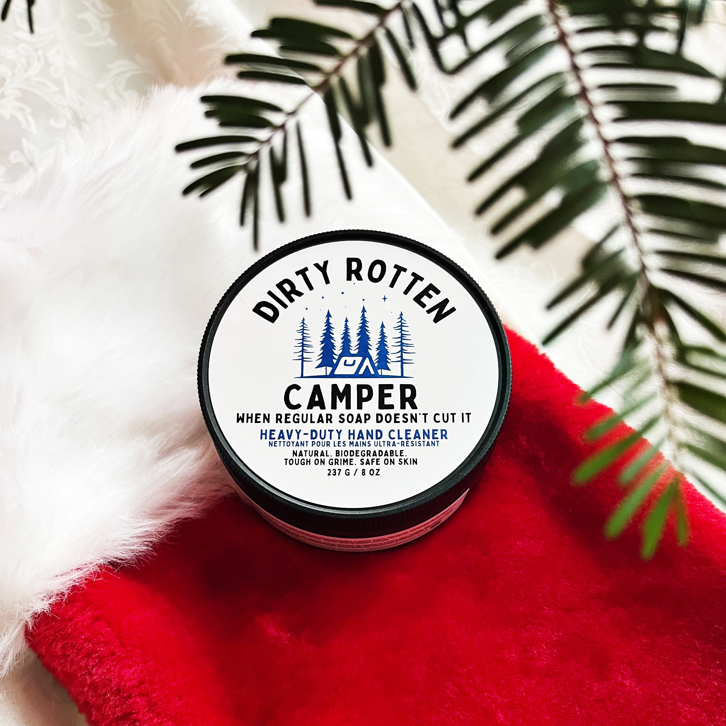 The Dirty Rotten Collection is an all-natural, local, and handmade heavy-duty hand cleaner built for life’s messiest doers. Packed with natural grit, this cleansing paste cuts through stubborn grease, grime, fish stink, campfire residue, gunpowder, and whatever else your day throws at you. It scrubs deep without harsh chemicals, leaving your hands clean, refreshed, and ready to get dirty all over again.