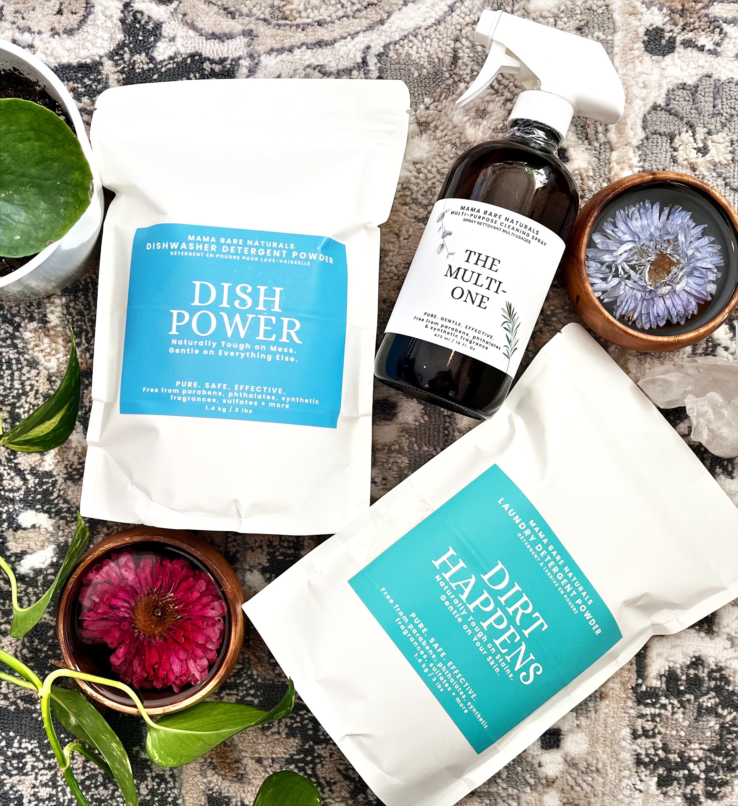 The Non-Toxic Home Reset Bundle includes the three products you use most in your home: laundry detergent, multi-purpose cleaner, and dishwasher detergent.